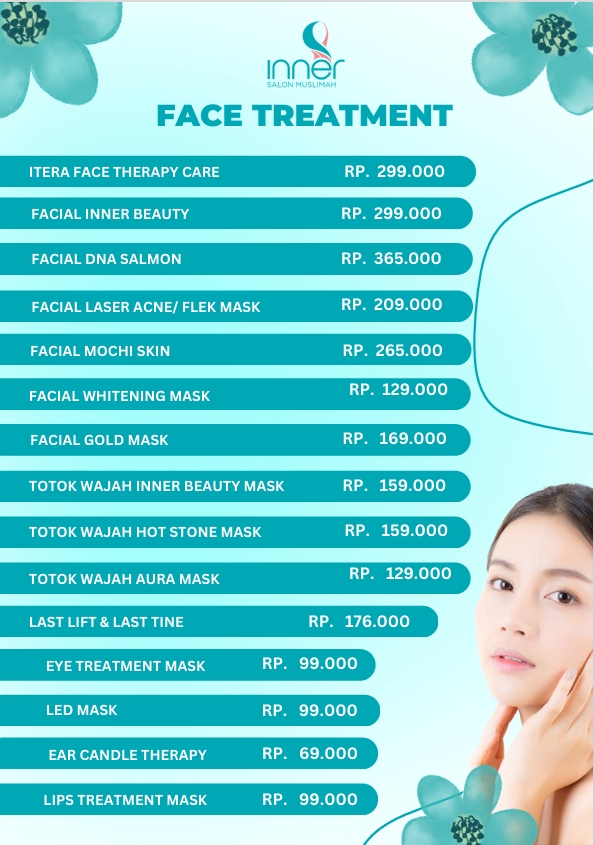 Setiap hari, kulit wajah kita terpapar oleh berbagai faktor eksternal seperti debu, polusi, sinar matahari, serta penggunaan produk makeup. Terlebih lagi bagi wanita berhijab, kulit wajah yang tertutup sebagian besar hari membutuhkan perawatan ekstra agar tetap bersih, sehat, dan bercahaya. Di Inner Salon Muslimah, kami menyediakan rangkaian perawatan wajah yang menyeluruh dan menggunakan produk-produk halal serta alami yang aman untuk semua jenis kulit.