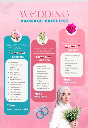 Menjelang hari pernikahan, stres dan persiapan yang padat bisa mempengaruhi kondisi kulit, rambut, dan tubuh. Dengan wedding treatment di Inner Salon Muslimah, kami siap membantu Anda tampil memukau dengan perawatan dari ujung kepala hingga ujung kaki.